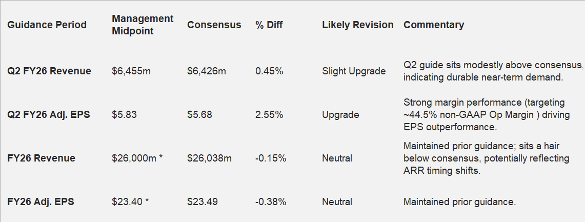 *FY26 management midpoints are derived from the Q4 FY25 report where the full-year guide was initially issued , which was explicitly reaffirmed in Q1 FY26.