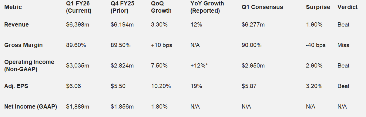 Chart: Q1 FY26 Actuals vs. Consensus