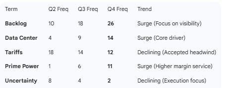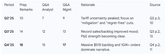 Q3’25 Theme: Sustainability of P&E: Analysts asked about “overcapacity” risks. Mgmt Ans: This isn’t just assembly; it’s a structural need for natural gas transmission to feed the grid for AI.