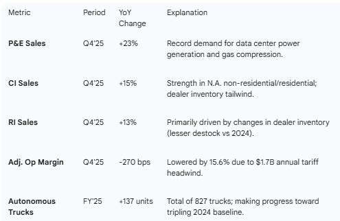 Segment Rotation: Power & Energy (P&E) has become the primary growth engine (37% STU growth in Q4), eclipsing Construction Industries (CI) in both scale and growth rate.