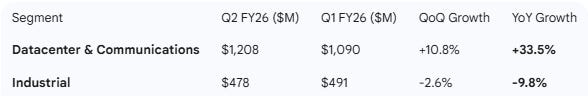 Management Discussion (Current Quarter - Q2 FY26): CEO Jim Anderson highlighted “another quarter of strong demand” in the datacenter segment and, crucially, projected that this momentum would carry through fiscal 2027. CFO Sherri Luther emphasized that significant revenue and margin expansion are driving EPS growth, and the company is aggressively increasing capital investment to meet the AI-driven demand curve.