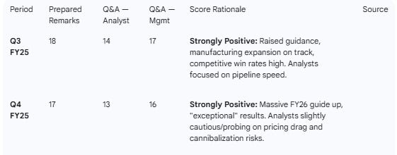 Guidance Momentum: The company issued a bullish FY26 revenue guidance of $80–$83B, implying ~25% growth at the midpoint over FY25.