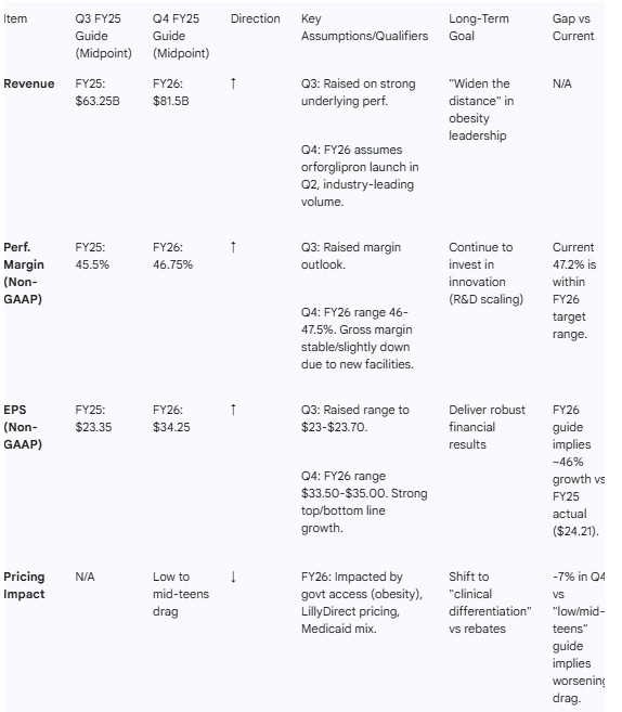 Growth Trajectory: Eli Lilly continues to deliver hyper-growth, with Q3 revenue up 54% YoY and Q4 up 43% YoY. FY25 revenue reached $65.2B (+45% YoY).