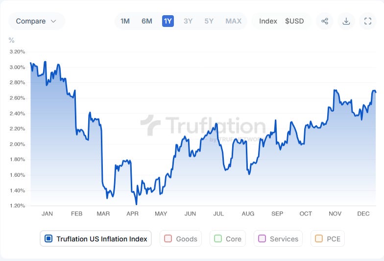 However, Truflation which correlates over time with the general inflationary trend has been rising since the last official print pre-shutdown