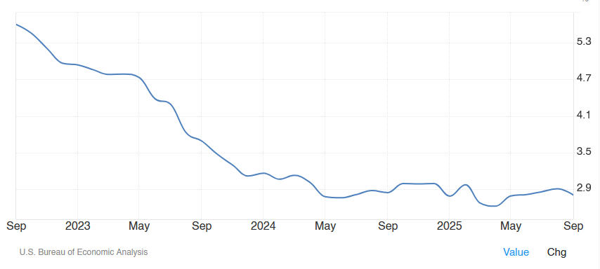 US Core PCE Inflation (YoY): The last print was for September showing inflation flat.
