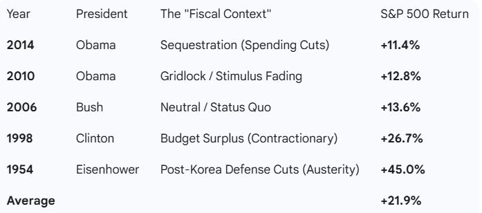 The Pattern: In many modern instances where an administration hit the fiscal gas pedal in a midterm year, the stock market finished negative. In a warning for 2026, the bond market can revolt (yields spike), which can force the Fed to tighten financial conditions, which in turn can crush equity valuations. The market can effectively be sensitive to any signs of political desperation as it signals heightened uncertainty.