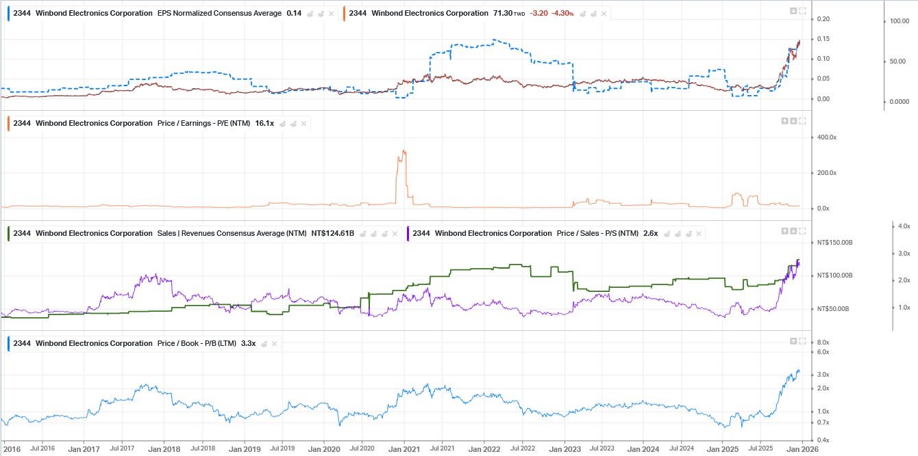 Winbond (P/Sales, P/E, P/Book multiple trends last 10 years)