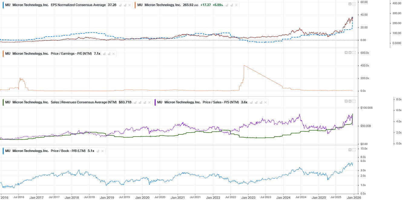 Micron Technology (P/Sales, P/E, P/Book multiple trends last 10 years)