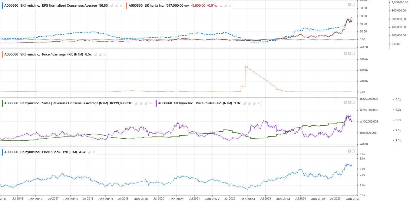 SK Hynix (P/Sales, P/E, P/Book multiple trends last 10 years)