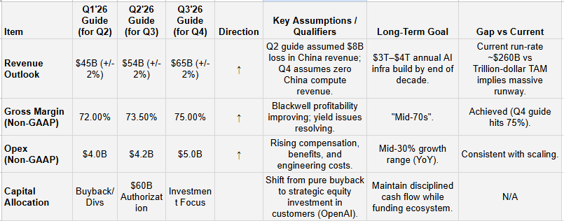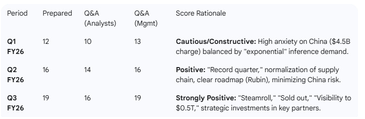 China Reset: A major narrative shift occurred in Q1 with a $4.5 billion inventory write-down due to export controls. By Q3, management explicitly removed China compute revenue from the outlook, signaling a pivot to non-China growth drivers.