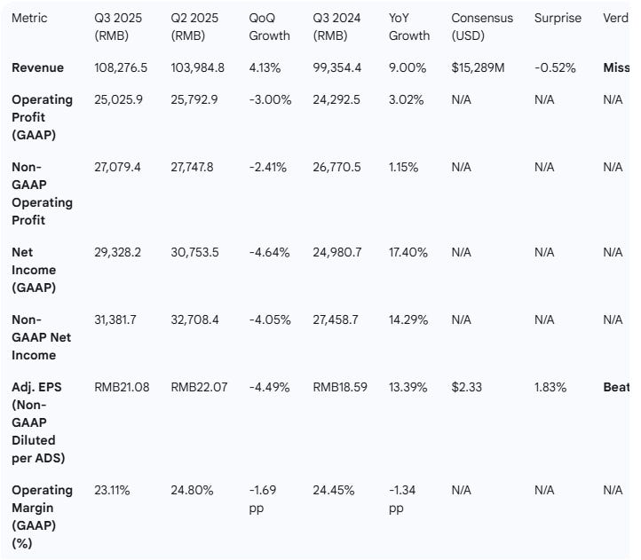 Note: The USD to RMB conversion rate used for Q3 2025 consensus comparison is $RMB7.1190 = US$1.00$ as disclosed in the Q3 2025 press release1.