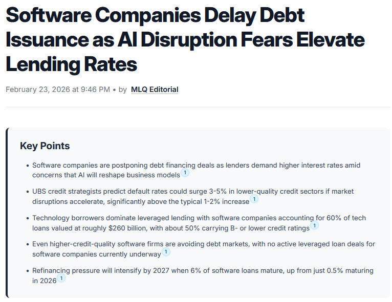 https://mlq.ai/news/software-firms-delay-debt-issuance-as-ai-disruption-fears-elevate-lending-rates/