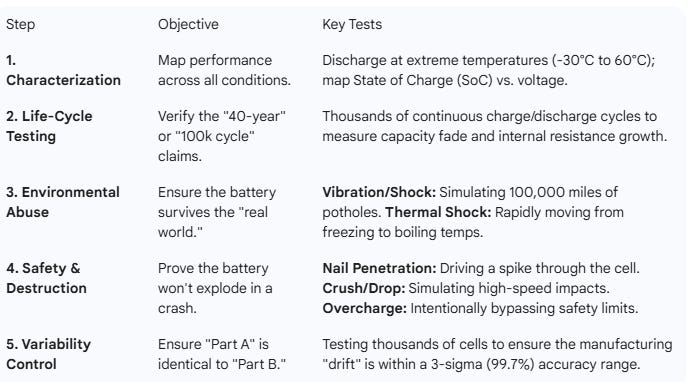 Before we dive into the specifics of these two leaders, it is critical for any investor to understand the validation process every battery must survive before it is allowed into vehicles offered to the consumer.